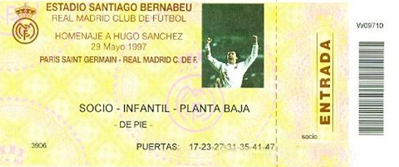 acte 6 – 29 mai 1997 – jubilé Hugo Sanchez, à Santiago Bernabeu : Real Madrid – PSG 4-1