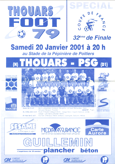 8 janvier 2014 : Brest-PSG 2-5 (à Brest) – 6 janvier 2013 : Arras-PSG 3-4 (à Calais) – 8 janvier 2012 : Locminé-PSG 1-2 (à Lorient) – 8 janvier 2011 : PSG-Lens 5-1 (au Parc des Princes) – 10 janvier 2010 : PSG-Aubervilliers 5-0 (au Parc des Princes) – 4 janvier 2009 : Montluçon-PSG 0-1 (à Clermont-Ferrand) – 5 janvier 2008 : Epinal-PSG 0-2 (à Epinal) – 7 janvier 2007 : PSG-Nîmes 3-0 (au Parc des Princes) – 7 janvier 2006 : Vermelles-PSG 0-4 (à Lens) – 8 janvier 2005 : Langueux-PSG 1-6 (à Guingamp) – 4 janvier 2004 : PSG-Troyes 3-2 (au Parc des Princes) – 5 janvier 2003 : Besançon-PSG 0-1 (à Sochaux) – 15 décembre 2001 : Luçon-PSG 0-2 (à Niort) – 20 janvier 2001 : Thouars-PSG 0-2 a.p. (à Poitiers) – 22 janvier 2000 : Limoges-PSG 3-4 (à Limoges) – 9 février 1999 : Thouars-PSG 1-2 a.p. (à Angers) – 17 janvier 1998 : Thouars-PSG 1-3 (à Niort) -