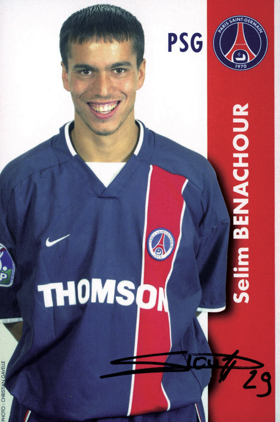 Le petit meneur de jeu tunisien n’a jamais pu s’imposer au PSG, qu’il avait rejoint à l’âge de 12 ans. Né à Paris, habitué du Parc des Princes où il admire son idole Safet Susic, Benachour a gravi patiemment les échelons pour enfin débuter avec les pros lors d’une rencontre amicale face au Japon (1-1, le 08/10/2000). Cinq mois plus tard contre Galatasaray en Ligue des champions, il participe à son premier match officiel avec le PSG (2-0, le 13/03/2001). Proche de Nicolas Anelka, Benachour doit pourtant quitter la Capitale pour s’aguerrir et gagner du temps de jeu. Prêté à Martigues (saison 2001-02) puis à Troyes (janvier-juin 2003), il revient plus fort à Paris et sympathise avec Ronaldinho, qui le prend sous son aile. Ses prestations avec l’équipe de Tunisie, avec laquelle il participe à la Coupe du monde au Japon (2002) puis au sacre à la Coupe d’Afrique des Nations (2004) lui laissent espérer une place de titulaire à Paris. Mais Luis Fernandez voit en lui un remplaçant de luxe pour sa star brésilienne, Vahid Halilhodzic lui préfère ses poulains Branko Boskovic et Serguei Semak et son expérience sous la direction de Laurent Fournier se résume à quelques rencontres sans lendemain. En 2005, son contrat n’est pas renouvelé, il quitte le PSG pour relancer sa carrière au Portugal, au Vitoria Guimaraes. Cette saison s’achève sur un nouvel échec, Benachour rejoint le Championnat russe, au Rubin Kazan puis le club koweitien d’Al-Qadisiya, à la fin de l’année 2007. En fin de contrat, il revient en Europe et signe en Liga espagnole, à Malaga (2009-2010). Après une première saison plutôt réussie (23 matches), Selim Benachour résilie son contrat à l’amiable. Après un court passage au Camp des Loges pour se remettre en forme, Benachour retourne alors au Portugal, au Club Sport Maritimo en janvier 2011. Après deux saisons à Chypre au club de l’APOEL Nicosie, Selim choisi l’Iran en rejoignant le Paykan FC durant l’intersaison 2014.