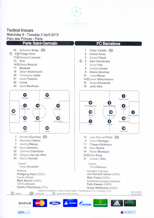 - David Beckham pour Marco Verratti : le joueur anglais avait profité de l’inexpérience de Marco Verratti pour débuter l’un de ses rares matches sous le maillot parisien. Une décision surprenante de Carlo Ancelotti, alors que Verratti ou Chantôme auraient pu occuper ce rôle de milieu défensif face au Barca. Un choix finalement perdant : Beckham, malgré son expérience, n’a jamais pesé sur une rencontre sans relief pour le « Spice Boy ».