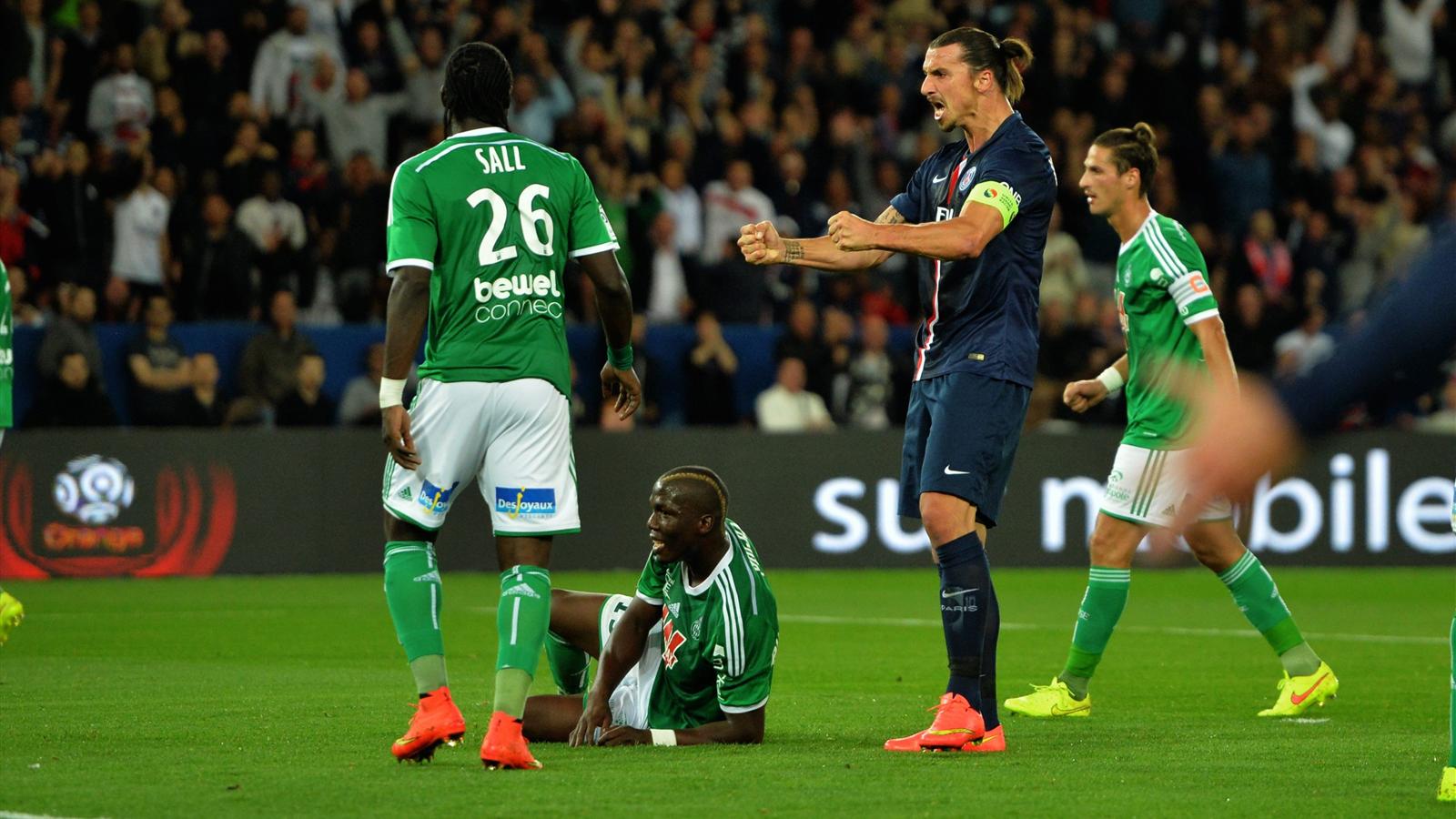 Le 31 août, le PSG reçoit donc l’ASSE. Paris ouvre le score sur une énorme bourde de Stephane Ruffier à la 24eme minute de jeu, qui laisse le ballon filer sous son pied. Saint Etienne obligé de se livrer, Zlatan a eu tout le loisir d’inscrire un triplé. Cavani y est aussi allé de son petit but pour arrondir la marque à 5-0, une victoire record face aux Stéphanois. Ibra en est déjà à cinq buts en 4 journées de championnat, la saison démarre bien pour le Suédois…