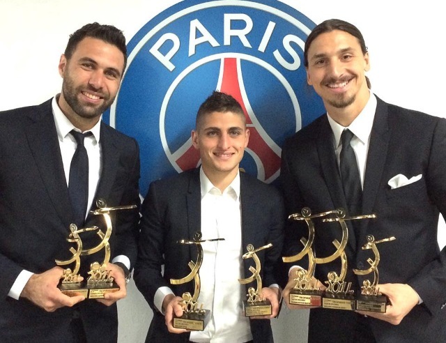 La soirée de gala pour les trophées UNFP récompense le PSG : Verratti meilleur espoir, Sirigu meilleur gardien, Areola, prêté par le PSG, meilleur gardien de Ligue 2, Zlatan Ibrahimovic meilleur joueur et auteur du plus beau but. Seul Laurent Blanc n’est pas récompensé. Sirigu, Thiago Silva, Thiago Motta, Verratti, Cavani et Ibrahimovic intègrent également le onze type de la saison. Belle soirée !