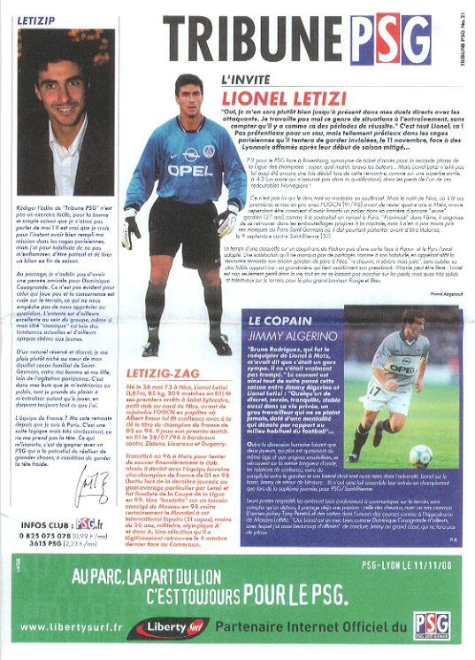 Le 11 novembre 2000, le PSG reçoit l’Olympique Lyonnais dans une ambiance surchauffée ou 43.591 personnes sont présents pour ce duel entre deux prétendants au titre de champion.