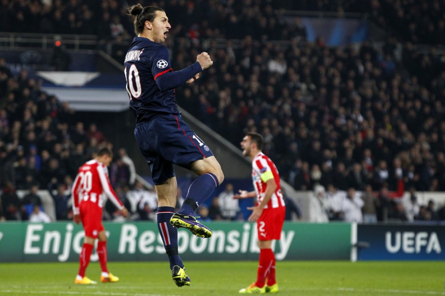 Buts : Ibrahimovic (7) et Cavani (90) pour le PSG, Manolas (80) pour Olympiakos