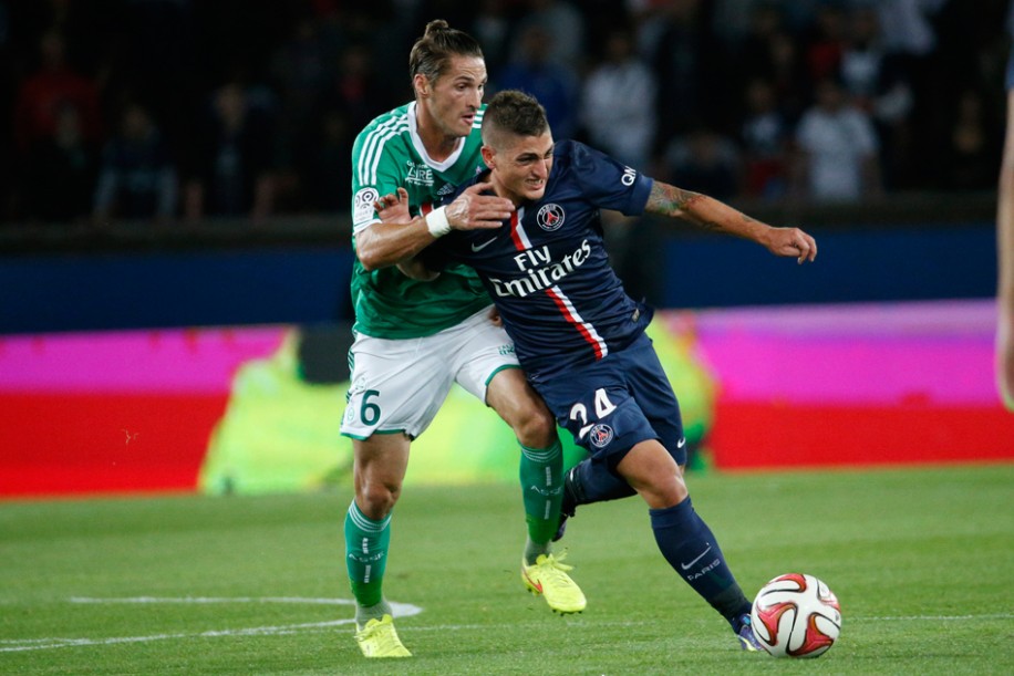 Pour cette réception, Laurent Blanc a choisi de titulariser Javier Pastore à la place de Blaise Matuidi, aux côtés du duo italien Thiago Motta – Marco Verratti.