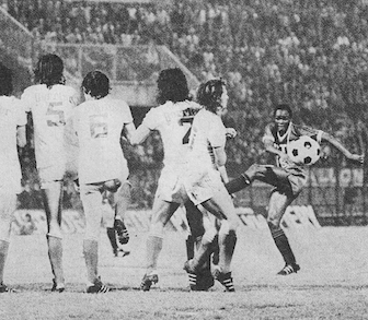 D’une frappe de 25 mètres le congolais M’Pelé s’offre même un doublé, profitant d’un rebond trompant le gardien marseillais, bien mal inspiré sur le coup (71). 2-2 et l’OM sonne à nouveau la charge. Jairzinho (73) ne parvient pas à redonner l’avantage aux siens et l’arbitre sifflera la fin du match dans une ambiance houleuse.