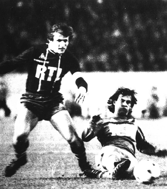 Saint-Etienne mène 2-0 à la mi-temps et semble se diriger vers un succès facile, mais les Parisiens ont du coeur : Beltramini rate l’occasion de réduire le score sur un service d’Huck (48eme) puis Mustapha Dahleb reprend une frappe de Beltramini repoussée par Curkovic et réduit logiquement le score (61eme). Le PSG poursuit sur sa lancée, le jeune Philippe Col inquiète Curkovic sur une frappe puissante (70eme). Ce n’est que partie remise : sur un centre de Huck mal dégagé par les défenseurs stéphanois, Eric Renaut frappe en force et égalise (76eme).
