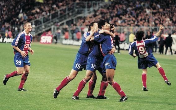 Devant 77.700 spectateurs payants, le PSG participe à la première finale de l’histoire du Stade de France et espére remporter la Coupe de la Ligue face aux Girondins de Bordeaux. La rencontre débute sur un rythme soutenu avec un léger avantage aux Bordelais : un coup-franc de Johan Micoud rase le montant (8eme) puis l’attaquant Sylvain Wilford est contré dans la surface de réparation parisienne (24eme). Après la sortie sur blessure du Girondin François Grenet et l’apparition sur la pelouse de Jean-Pierre Papin, Bordeaux ouvre le score sur une frappe puissante à l’entrée de la surface de réparation signée Micoud (30eme). Paris réagit, le gardien Ulrich Ramé sauve du pied sur une tentative de Florian Maurice (32eme), un centre-tir de Didier Domi est dévié par Paulo Sergio Gralak (36eme) et Marco Simone frappe à deux occasions sur le petit filet (40eme et 45eme).