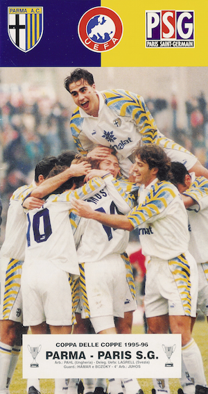 Le 1/4 de finale de la Coupe d’Europe des vainqueurs de coupes entre le PSG et Parme est annoncée comme une finale avant la lettre. Paris retrouve une vieille connaissance, l’attaquant bulgare et ancien Barcelonais Hristo Stoichkov qui, comme à son habitude, a tenu des propos désobligeants sur les Français et le PSG avant la rencontre… Paris est prudent en début de rencontre, même si Lama est obligé d’intervenir dans les pieds de Stoichkov avant un sauvetage de Cobos (10eme). Gianfranco Zola, la star italienne de Parme, quitte prématurément la pelouse,blessé aux adducteurs (27eme) puis c’est au tour de Youri Djorkaeff de sortir du terrain sur blessure (coup au mollet), ildoit laisser sa place à Nouma (43). Après la pause, Lama reste vigilant et détourne des deux points une frappe de Dino Baggio (51eme) . La rencontre s’anime, ce diable de Stoichkov ouvre le score d’une frappe croisée (58eme). Le PSG se découvre pour égaliser, Loko sur un service de Nouma frappe au but mais sa tentative échoue sur la base du montant. Raï récupère le ballon, son tir est contré (72eme). En fin de match, Bernard Lama réussit un arrêt décisif lorsqu’il intervient dans les pieds de « Pipo »Inzaghi (88eme). Le PSG s’incline 1-0 et le retour sera chaud à Paris, mais Luis Fernandez reste confiant : « Le match s’est presque parfaitement déroulé. C’est vrai qu’il y a la défaite, mais il y a un match retour. J’ai vu un grand PSG ce soir ». Le PSG sera encore plus grand au retour, avec un succès 3-1, et deux penaltys de Raï. Avec le recul, Paris peut dire – une nouvelle fois – merci à son gardien de but et capitaine Bernard Lama : sans ce sauvetage en toute fin de match, le parcours en Coupe des coupes aurait pu s’achever en 1/4 de finale. Et le 8 mai 1996, point de consécration européenne pour le PSG du côté de Bruxelles…