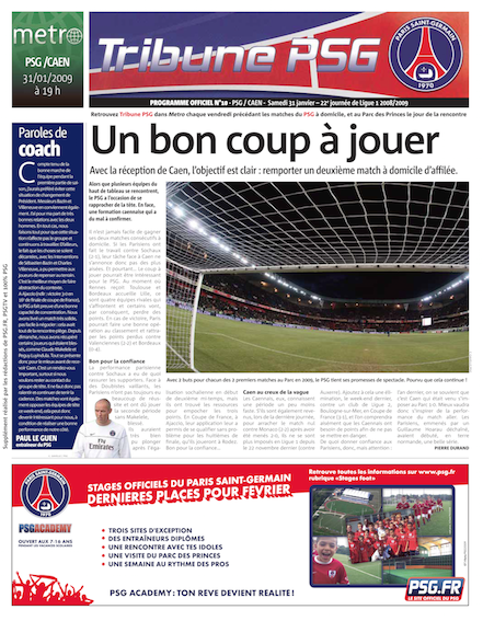 le programme du jour : le 31 janvier 2009, PSG – Caen