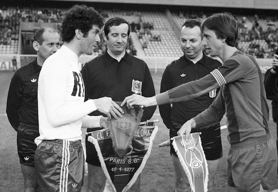 Retour sur cette première sans vainqueur, le 19 avril 1977, avec la présence côté catalan des deux stars néerlandaises, Cruyff (Johan I) et Neeskens (Johan II).