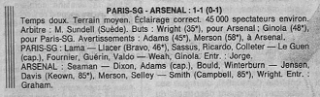 - lors des matches face au Real Madrid (le 18 mars 1993 et le 15 mars 1994) et Arsenal (le 29 mars 1994), le PSG n’a pas communiqué l’affluence précise de la rencontre, qui varie, selon la presse, entre 45.000 et 46.000 spectateurs… environ !!
