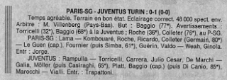 - à l’occasion de la rencontre.PSG-Juventus Turin, le 22 avril 1993, une affluence de 48.000 spectateurs environ a été communiquée dans la presse (L’Equipe, Le Parisien, France Football), un total peu probable aux vues des mesures sécuritaires prises lors de cette rencontre à haut risque.