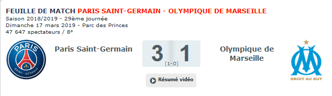 Le nouveau top 10 du PSG au Parc des Princes en championnat : 1. PSG-Marseille, le 23 octobre 2016 : 47.929 spectateurs – 2. PSG-Nantes, le 14 mai 2016 : 47.844 spectateurs – 3. PSG-Guingamp, le 29 avril 2018 : 47.759 spectateurs – 4. PSG-Nantes, le 18 novembre 2017 : 47.680 spectateurs – 5. PSG-Nice, le 11 décembre 2016 : 47.665 spectateurs – 6. PSG-Marseille, le 17 mars 2019 : 47.647 spectateurs – 7. PSG-Lille, le 2 novembre 2018 : 47.549 spectateurs – 8. PSG-Bordeaux, le 30 octobre 2017 : 47.537 spectateurs – 9. PSG-Nantes, le 22 décembre 2018 : 47.511 spectateurs – 10. PSG-Amiens, le 20 octobre 2018 : 47.497 spectateurs